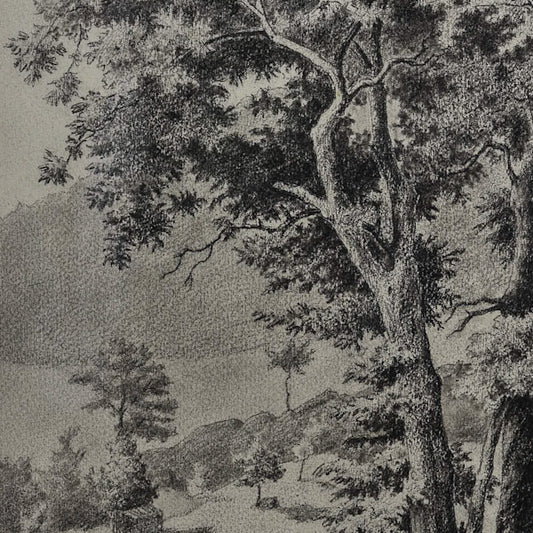Disegno a carboncino “Paesaggio invernale” f.to C. Merlo datato 1905