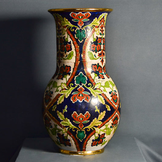 Vaso in terracotta dipinta con elementi vegetali e floreali f.to Batignani. Manifattura fiorentina. Metà ‘900