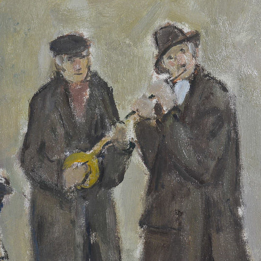 Dipinto olio su tela “Personaggi” f.to Stroppa. Epoca ‘900