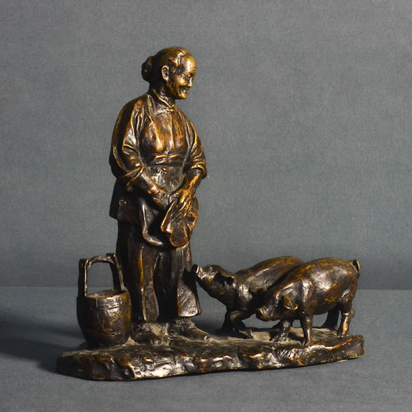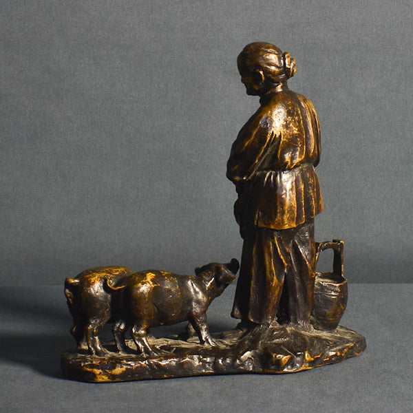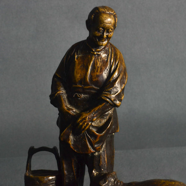 Bronzo fusione a cera persa “Contadino con armenti”. Inizi ‘900 Giappone