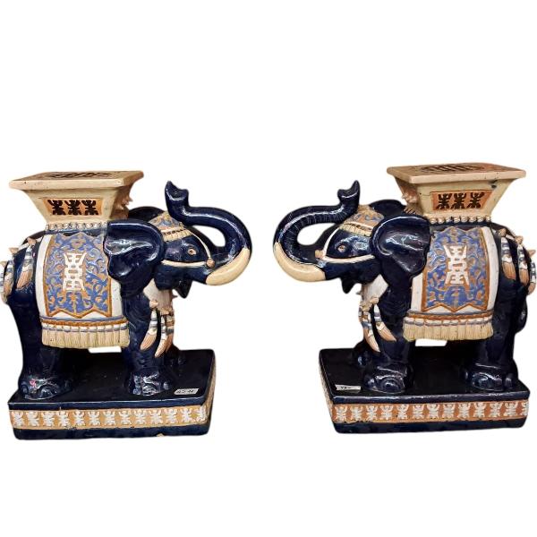 COPPIA DI ELEFANTINI ASIATICI IN CERAMICA DPINTI A MANO