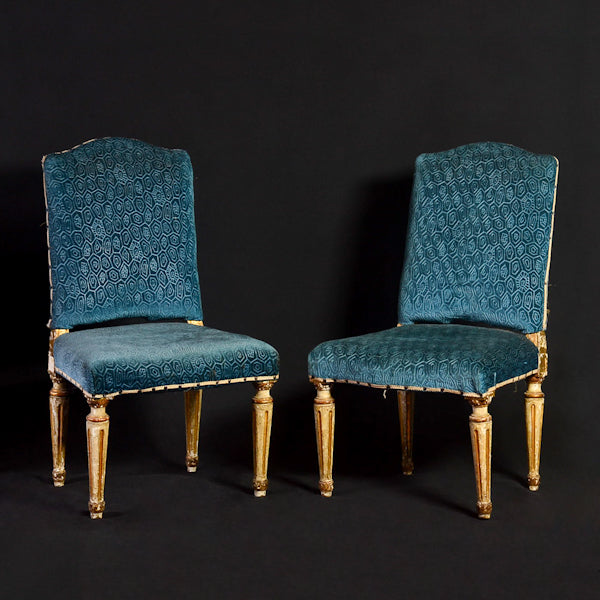 Coppia di sedie laccate e lumeggiate oro. Epoca Luigi XVI. Torino