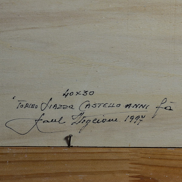 Dipinto olio su tavola “Piazza Castello storica” f.to Raul Viglione anni ‘90