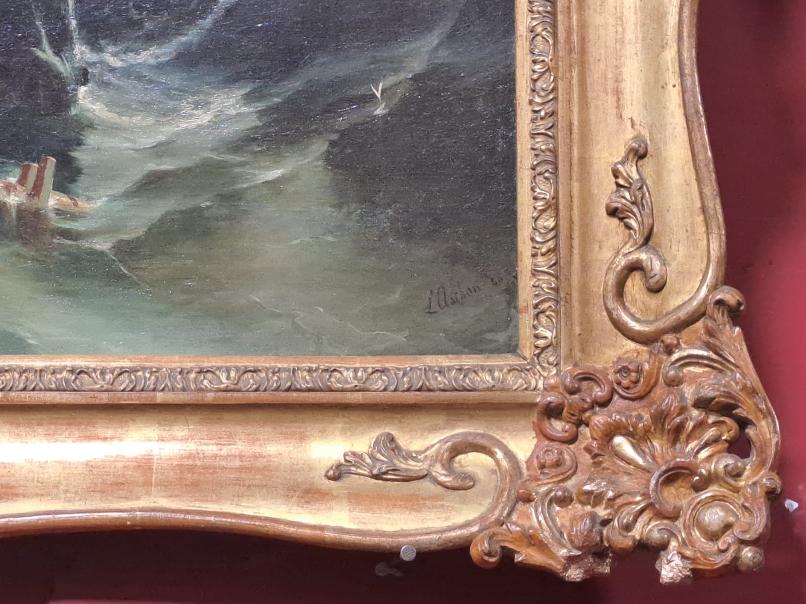 Dipinto olio su tela "IL SALVATAGGIO" F.to e datato L. Ashton in basso a destra
