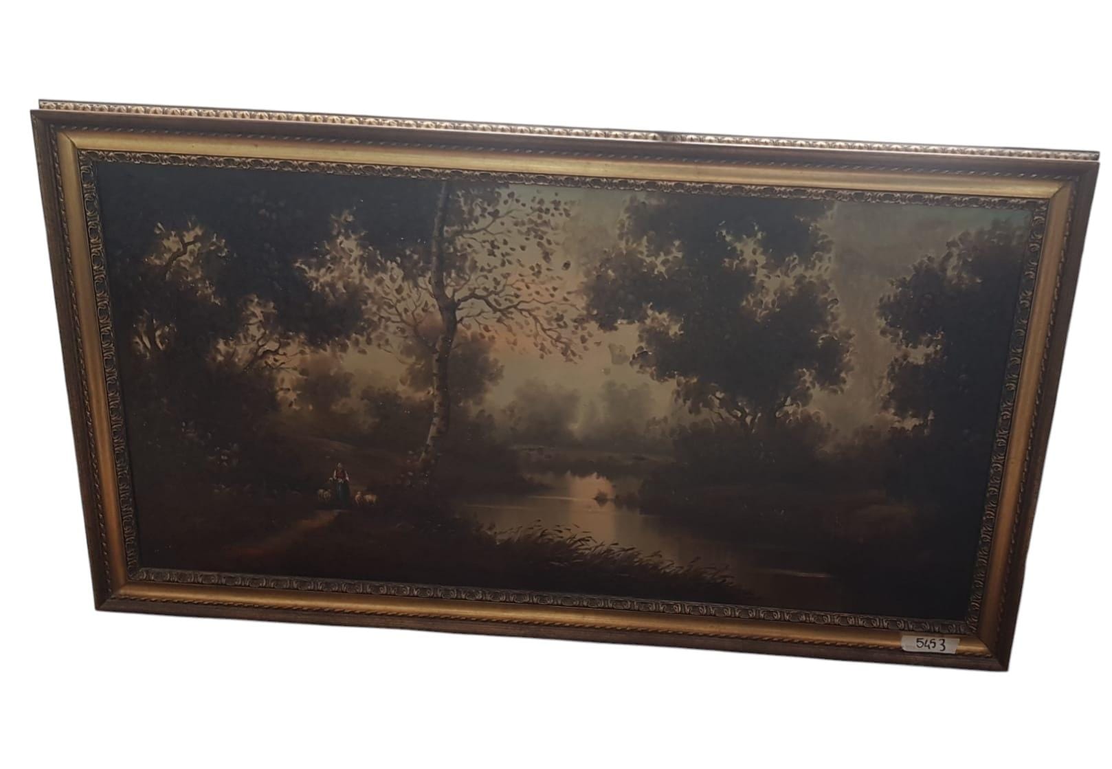 Dipinto olio su tela "Scena Lacustre" scuola francese epoca fine '800