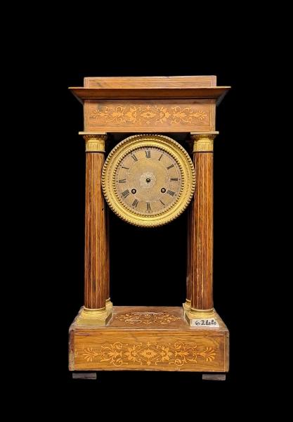 Pendola stile Impero in noce chiaro e scuro. Epoca fine 800