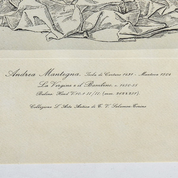 Incisione rappresentante “La vergine col bambino” di Andrea Mantegna