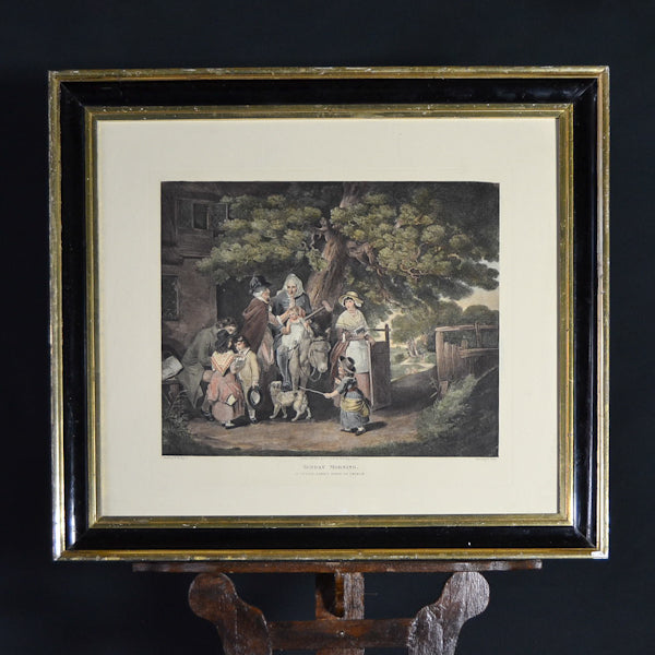 Stampa acquerellata “La domenica prima della Messa” con cornice d’epoca. Londra, inizi ‘800