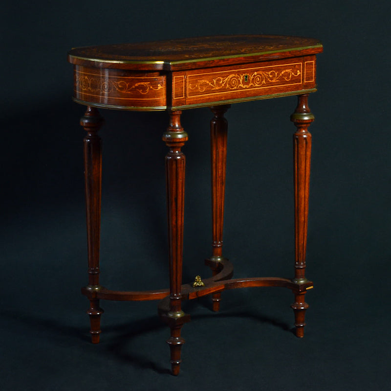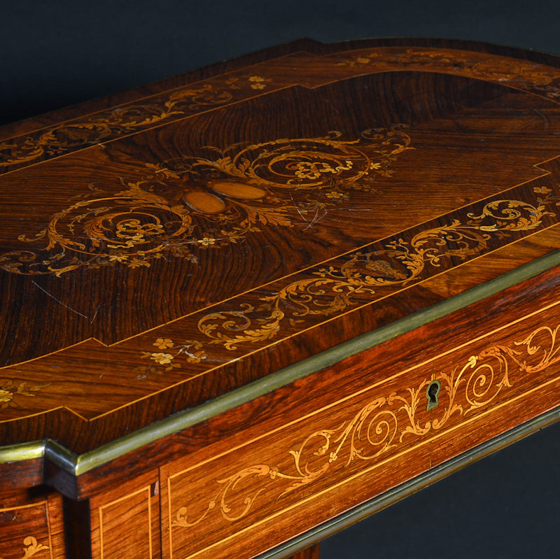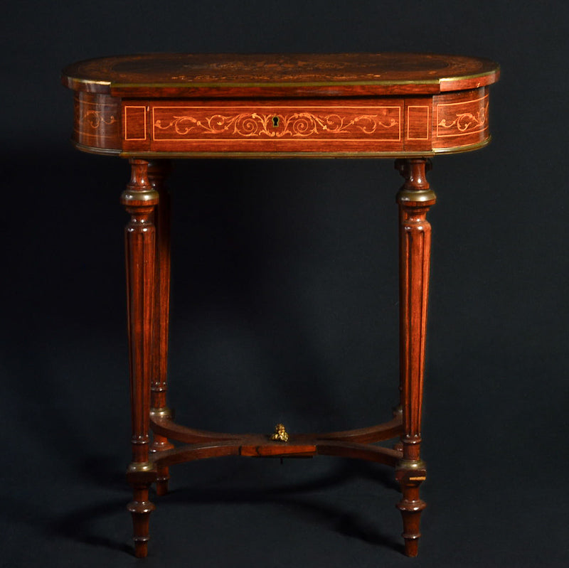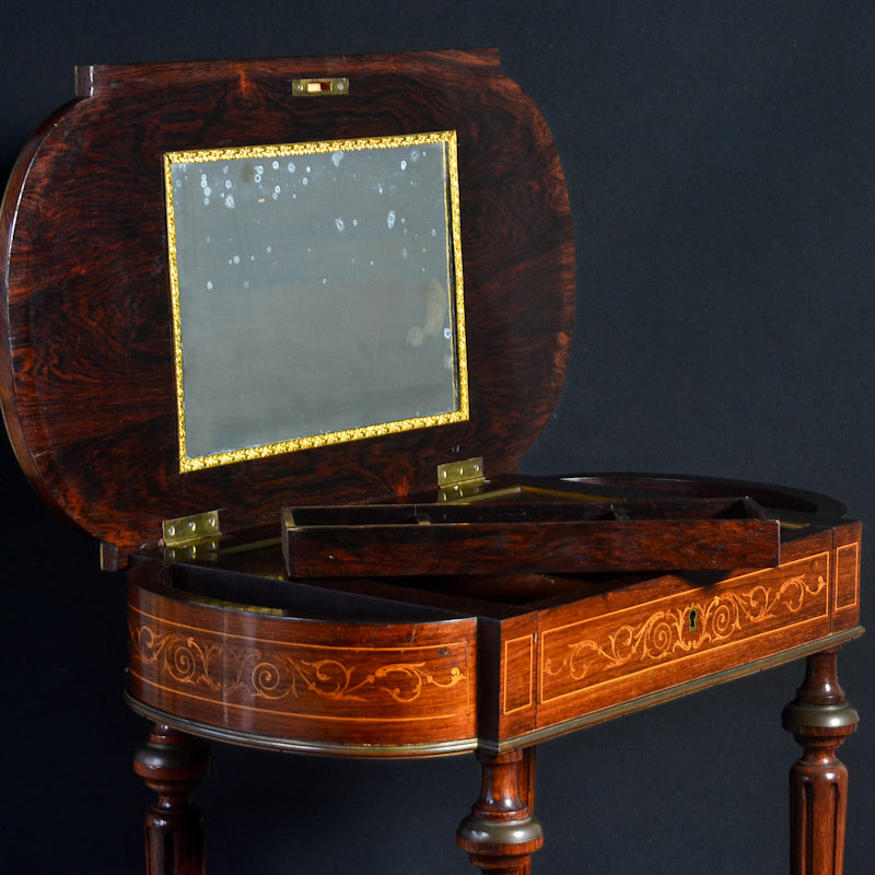 Tavolo da centro e toilette in stile Luigi XVI intarsiato. Fine XIX secolo